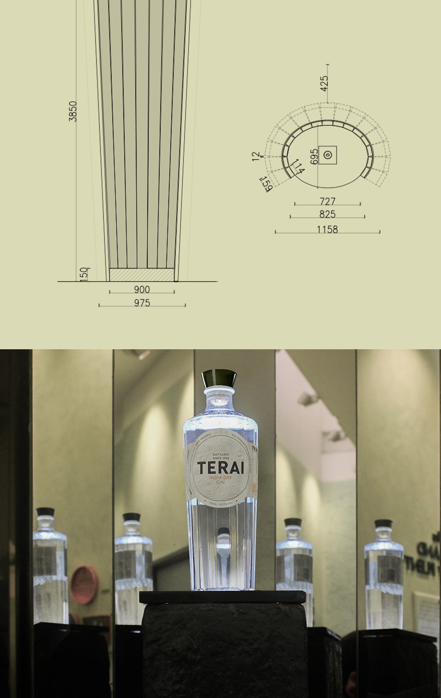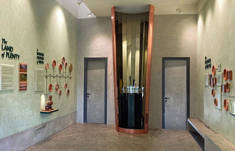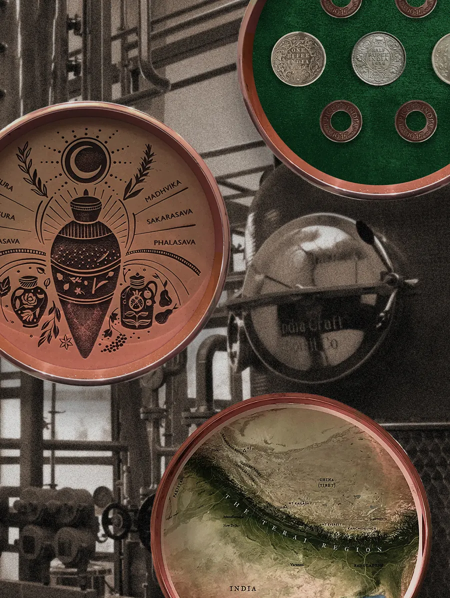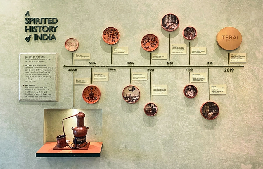 The Story: While designing Terai Gin's story and packaging, a rich narrative emerged—India's legacy as a source of rare spices and botanicals, its centuries-old history of alcohol production, and the Swarup family's lineage as landowners, agriculturalists, and distillers. These threads are woven into a clear spatial narrative, unfolding across a dedicated exhibition area and the main distilling hall.