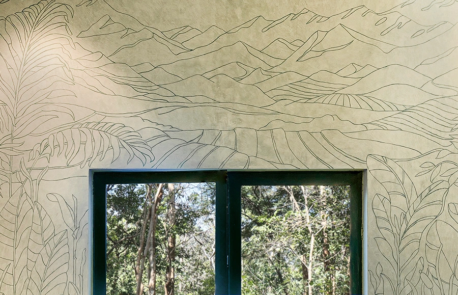 Handcrafted: The brand's ethos of craft shape the material language of the space. Expressed through a layered palette of hand-painted surfaces, brass artefacts, ceramic sculptures, embroidered tapestries, lacquered pieces, and woven furniture—the brand's story is brought to life in a tactile, artisanal environment.
