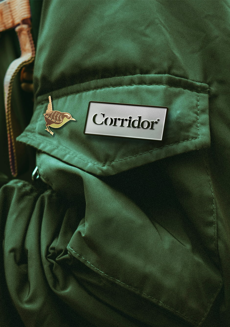 Reconnecting: As an umbrella brand spanning multiple retreats, regeneration and conservation projects, festivals, and products, Corridor's identity required a sense of restraint and longevity. A seemingly classic logotype subtly embeds the idea of regenerating corridors. Patterns, illustrations, and symbols extend this language, echoing the slow formation of connections between once-isolated ecosystems.