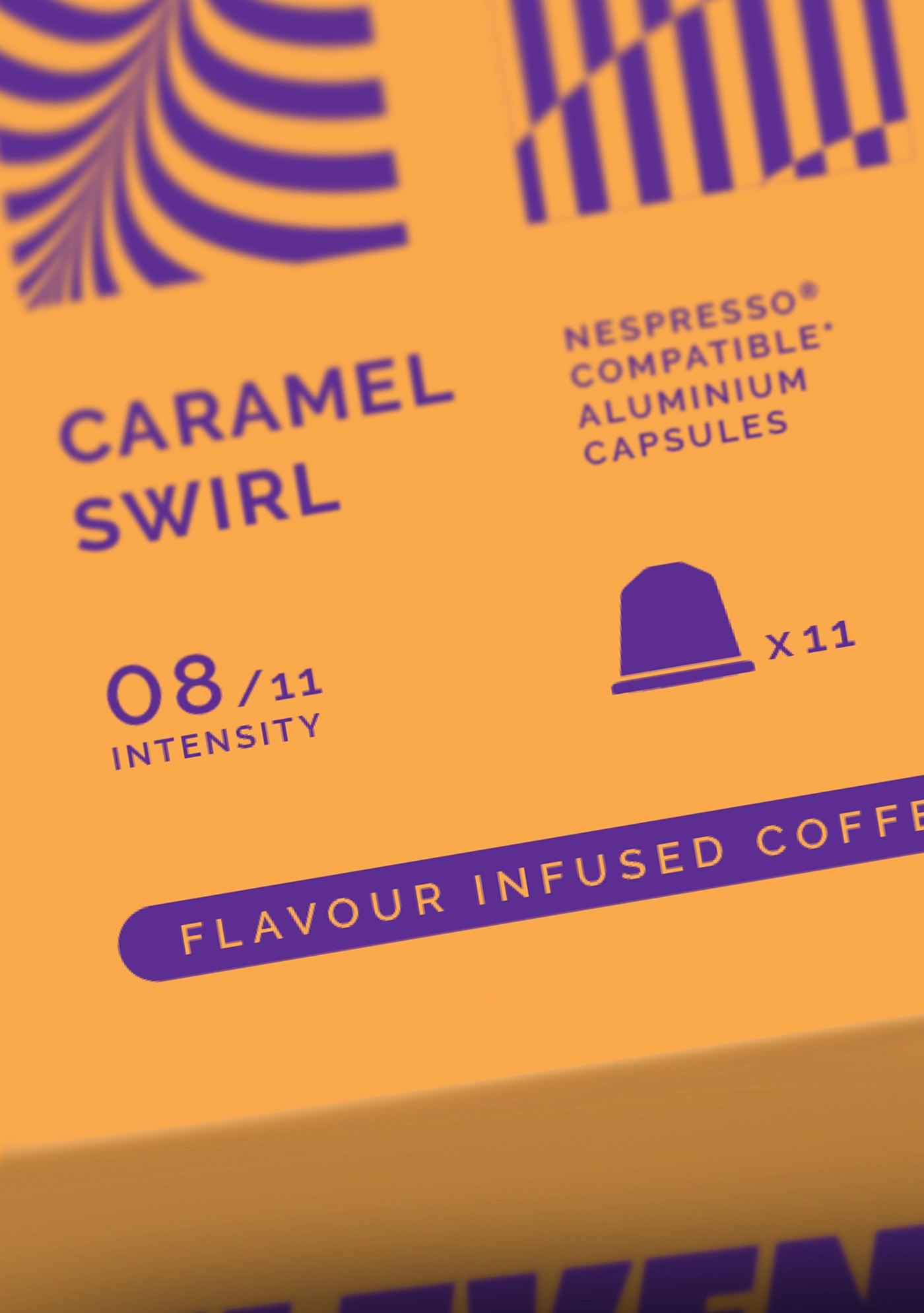 The Grind: Cafe-quality coffee at home, in seconds? Coffee capsules are the answer. The sleek aluminium pods and futuristic machines shift away from traditional coffee imagery of vintage equipment, steaming cups and verdant plantations. The challenge was to build a branding and packaging system that stayed true to this contemporary aesthetic, while introducing warmth, personality, and a sense of pause.