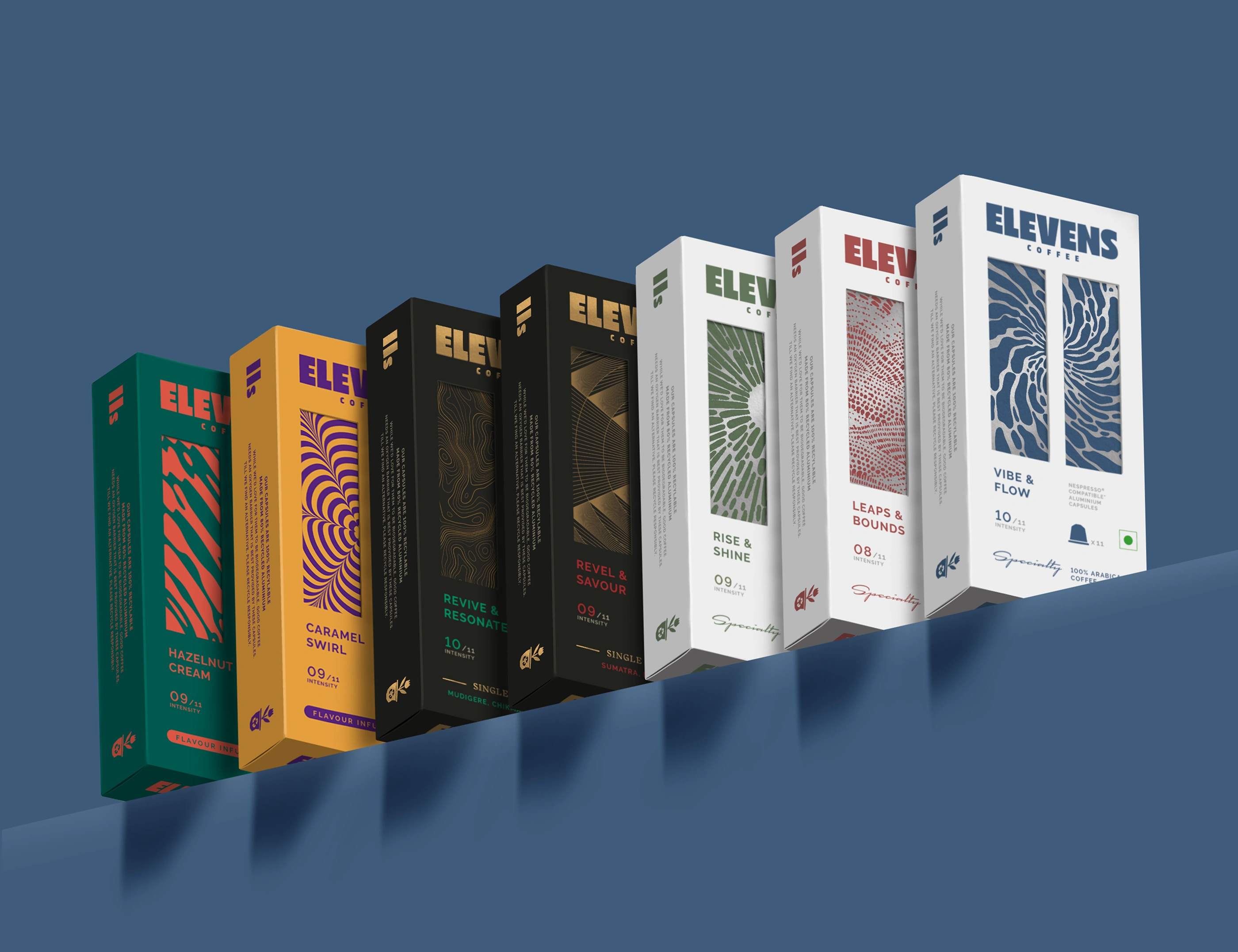 The Brew: Elevens Coffee takes its name from the time of the day one of the founders reaches for their first cup—eleven o'clock, a good moment for a break in the rhythm of the morning. The numerals form the pause symbol, which becomes a recurring device on the packaging, including a window into expressive illustrations that interpret the mood of each blend. A bespoke packaging structure turns the simple act of opening the box into a deliberate ritual, reinforcing the brand's central idea: to slow down, pause, and savour the moment.
