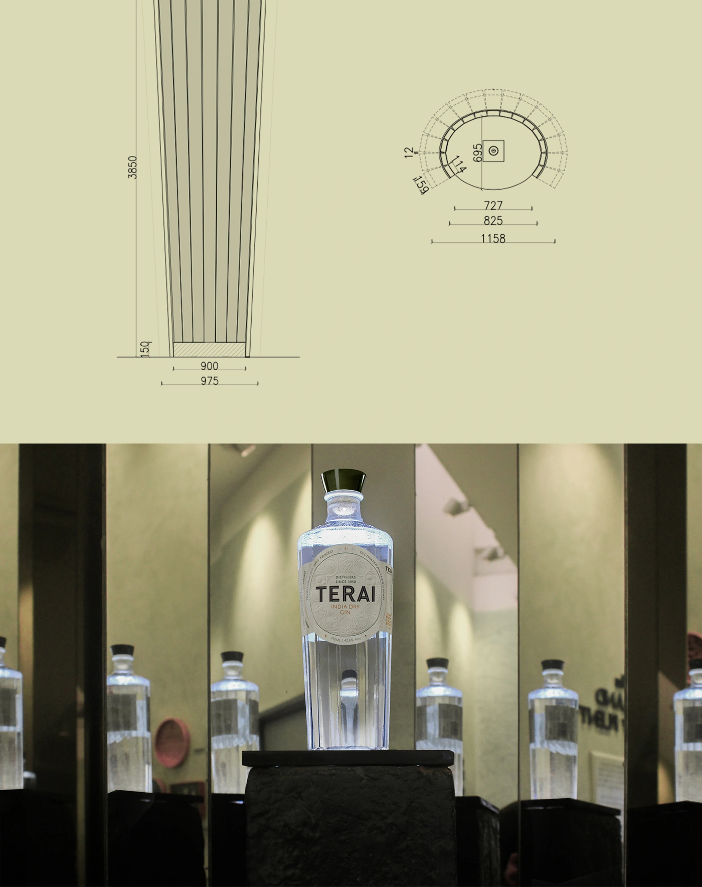 The Story: While designing Terai Gin's story and packaging, a rich narrative emerged—India's legacy as a source of rare spices and botanicals, its centuries-old history of alcohol production, and the Swarup family's lineage as landowners, agriculturalists, and distillers. These threads are woven into a clear spatial narrative, unfolding across a dedicated exhibition area and the main distilling hall.