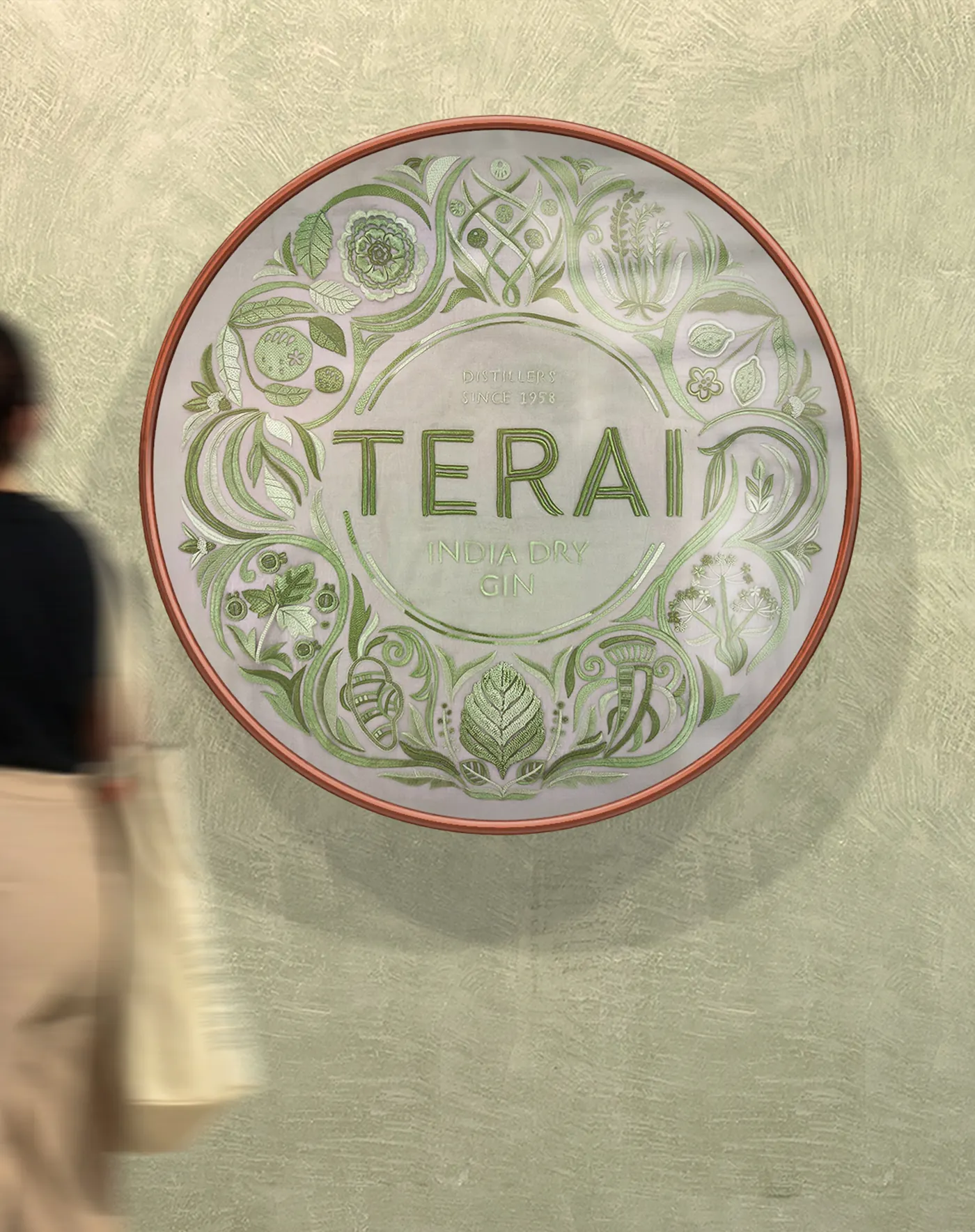 Designed as a cool green respite from the Rajasthan heat, the exhibition space is meant to feel like a refreshing sip of gin after the blazing sun outside. This immersive environment becomes the stage on which Terai tells its story—a proud showcase not only of the brand and the Swarup family legacy, but also a quiet remembering of India's often forgotten past. Through stories of botanicals, indigenous spirits, and agricultural traditions, the exhibition articulates Terai's philosophy and firmly places the brand on the global gin map.